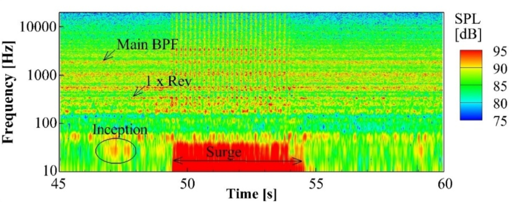 文章聚焦于离心压气机喘振现象,围绕喘振现象本质特征与喘振先兆探测行业热点问题,在半消音室环境中采用高频压力传感器和麦克风同步测试喘振发生全过程(含喘振发生前和发生后)的压力信号。研究结果:1)确认喘振发生前压缩系统内部存在微扰动,是典型的喘振先兆波;2)揭示此种喘振先找波频率范围为30~85Hz,幅值小于1Pa,属于声压测试范围;3)解释了传统高频压力传感器未能捕获此类喘振先兆波,麦克风可以成功捕获的根本原因;4)指出声学测量是探测喘振先兆和建立喘振预警系统的可行技术途径。