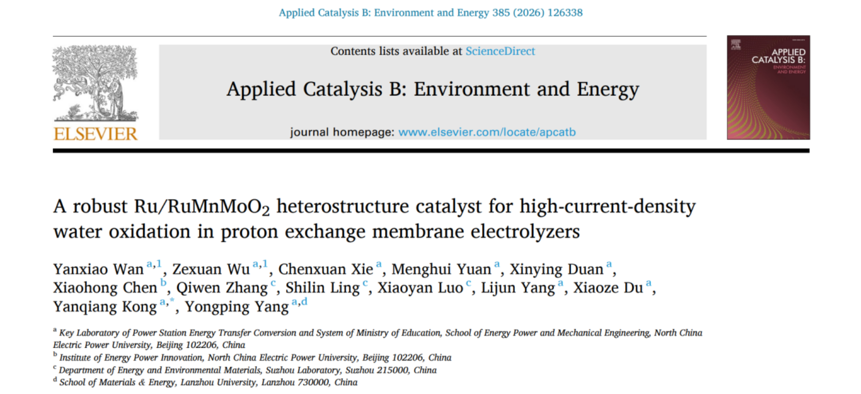 近日,木瓜视频 孔艳强副教授团队在《Applied Catalysis B: Environment and Energy》期刊在线发表了题为“A robust Ru/RuMnMoO2 heterostructure catalyst for high-current-density water oxidation in proton exchange membrane electrolyzers”的研究论文,木瓜视频 为论文第一完成单位,木瓜视频 硕士研究生万延笑、博士研究生吴泽轩为第一作者,孔艳强为通讯作者。该研究工作得到了国家自然科学基金的资助。