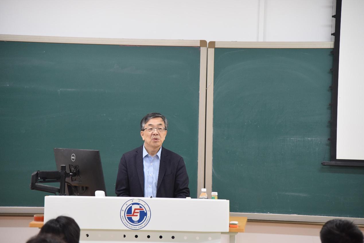金红光特别强调,能源结构、产业结构调整不可能一蹴而就,更不能脱离实际,要发展能效、清洁与低碳相容与协调的三位一体新模式。他带领同学们回归能源转化的底层原理,重温了吴仲华先生“温度对口、梯级利用”的总能系统理念,讲述了找准不可逆损失最大的环节作为主攻方向的研究思路。他提出,燃料源头转化是低碳减排的突破口,应着力发展化学链燃烧、煤炭分级气化等变革性技术。他还结合青海海南州、新疆博乐、内蒙古鄂尔多斯等地的实际案例,以及张家口可再生能源示范区的多能互补系统,生动展示了从理论创新到工程验证的科研路径。