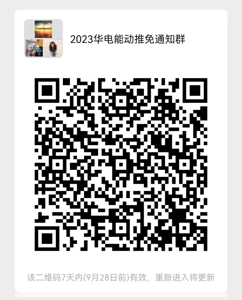 报名同时请务必微信扫码加入“2023年能动学院推免生通知群”(入群后请在群中将备注改成“姓名-本科院校-手机号”)。