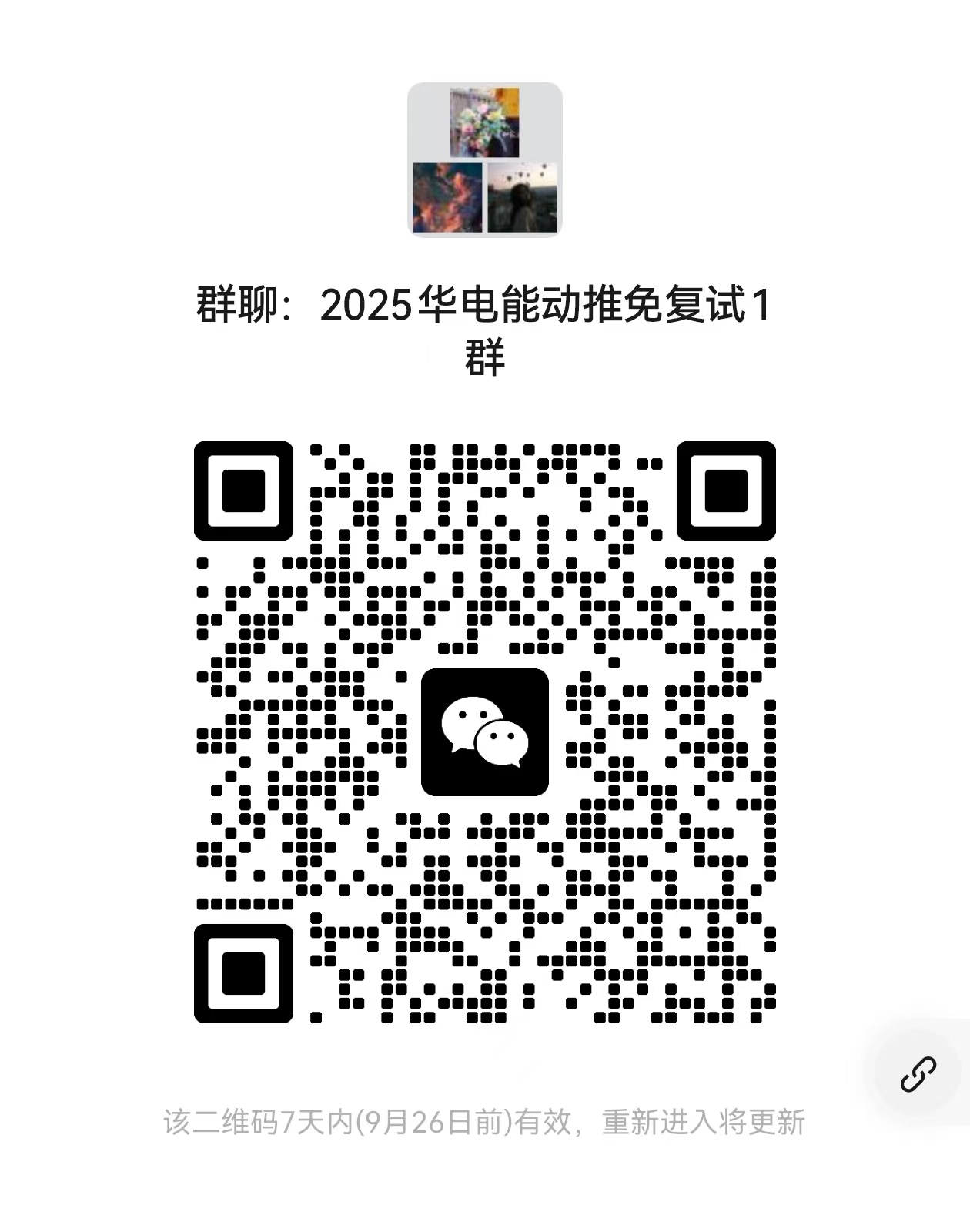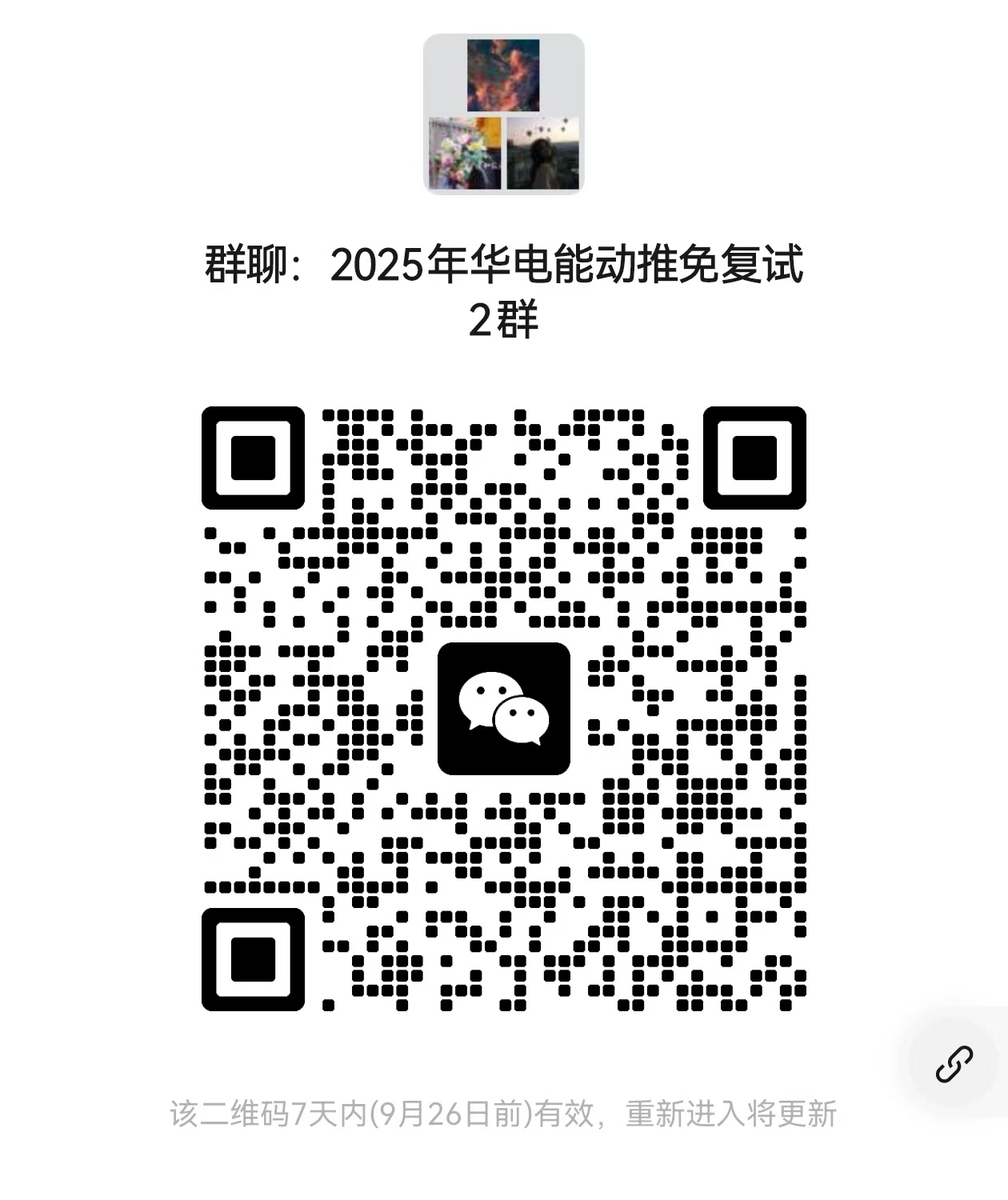 报名同时请务必微信扫码加入“2025华电能动推免复试群”(进入1个群即可,入群后将备注为真实姓名+本科院校)。
