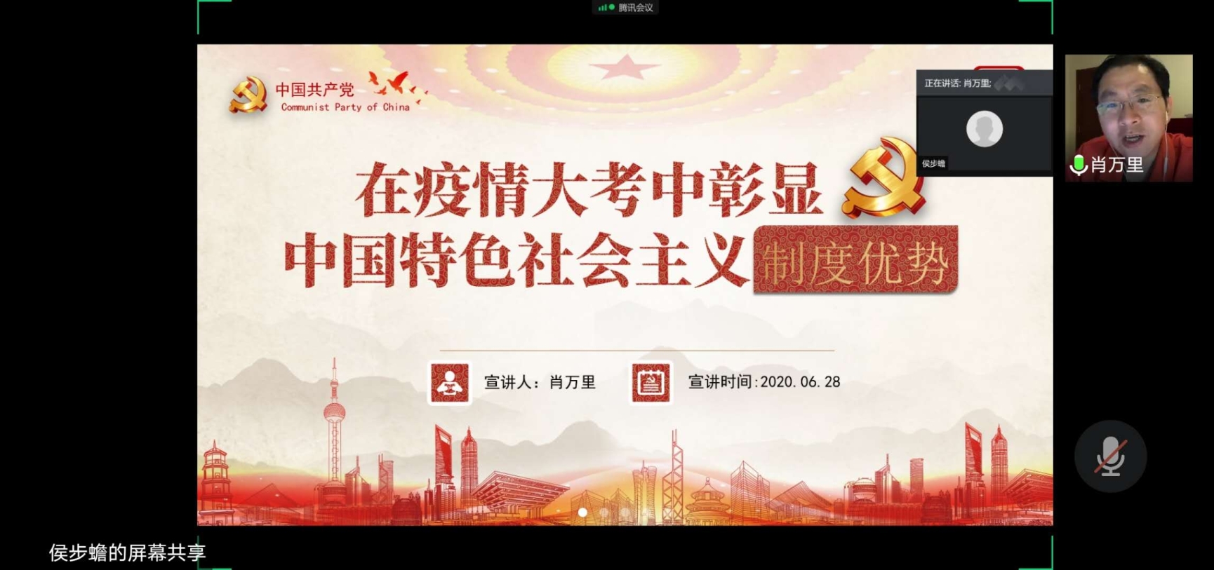 6月28日晚,能动学院肖万里书记为教工党支部书记上党课,党课题目为:在疫情大考中彰显中国特色社会主义制度优势”。